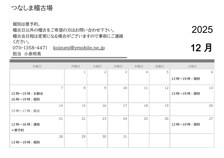 令和7年 稽古日程