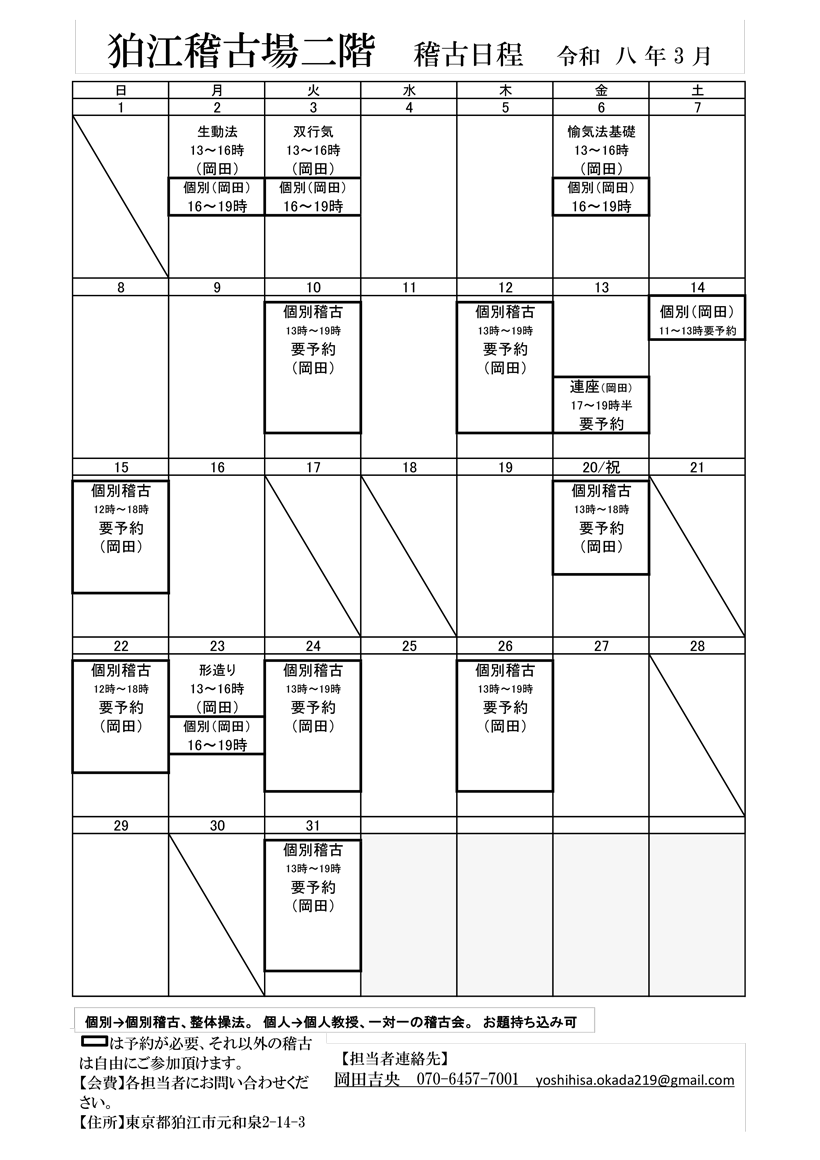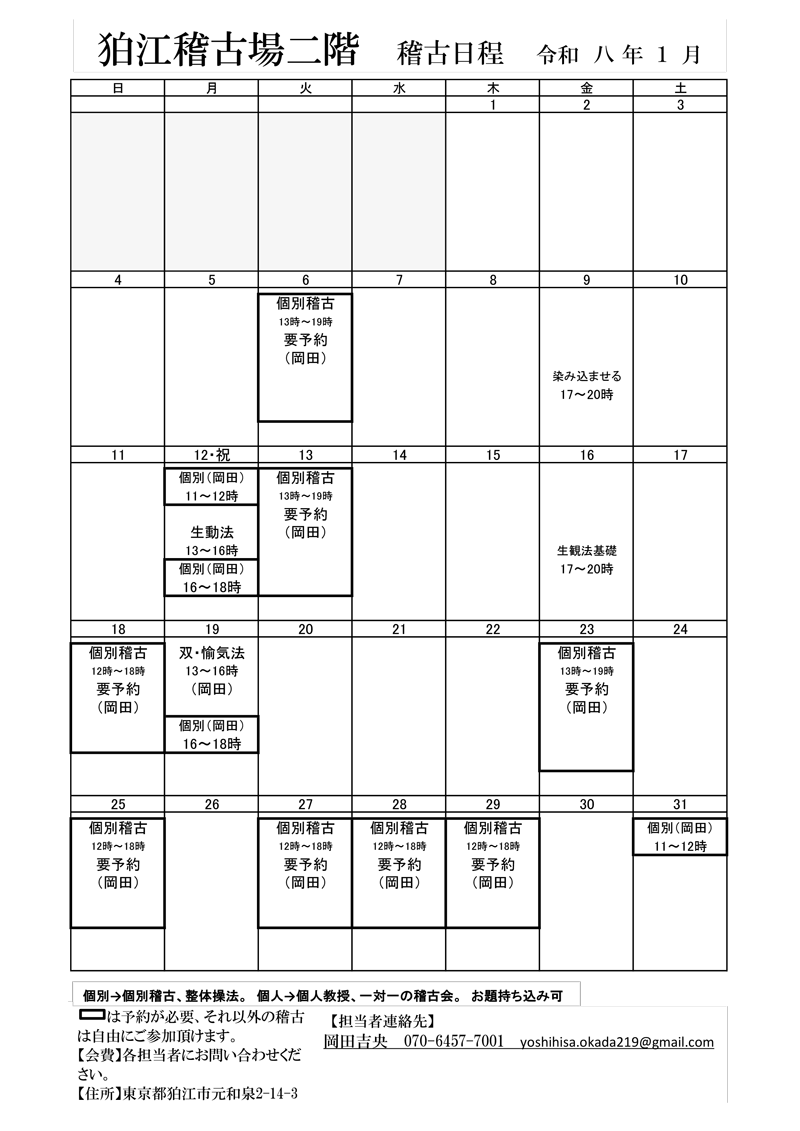 ※初めて狛江稽古場にお越しの際は各担当者に事前にご連絡お願い致します。 |