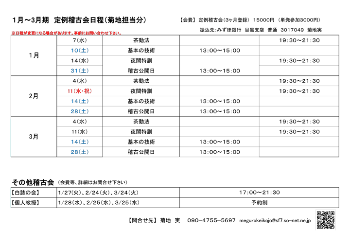 菊地 実 090−4755−5697 megurokeikojo@sf7.so-net.ne.jp